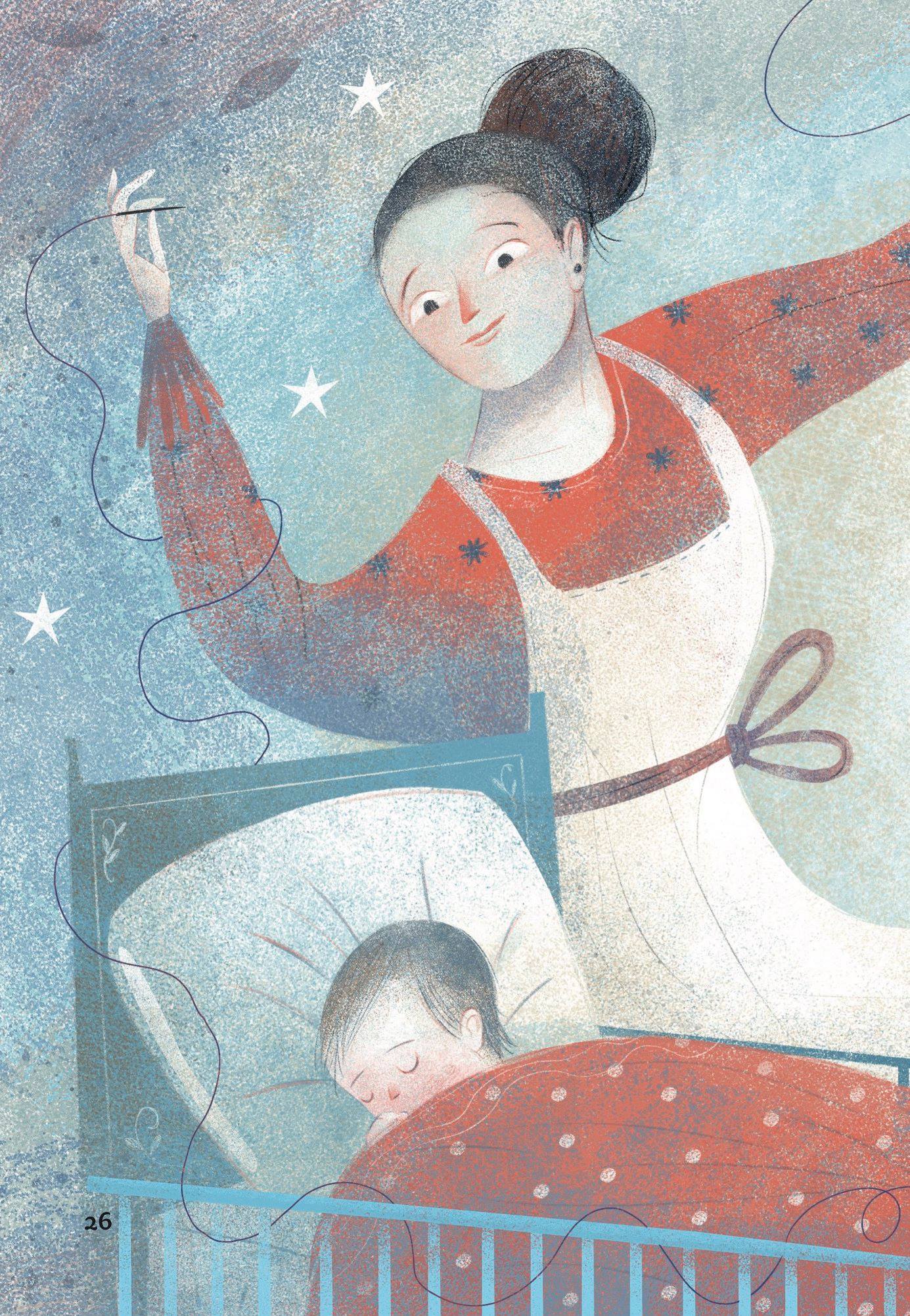 Teniendo en cuenta que sobre la nieve es difícil ver las sombras, Anno aprovecha el segundo para contarnos dos historias en paralelo. Una y como ya hemos hecho referencia antes, es la de La pequeña cerillera, el personaje de H. C. Andersen, y la otra trata del guardián del mundo de las sombras. Ambas se presentan en la misma doble página -para lo que utiliza técnicas de ilustración diferentes-, y conforme avanzamos, observamos cómo se entremezclan ensalzando la unión indisoluble que luces y penumbra acarrean desde antiguo.